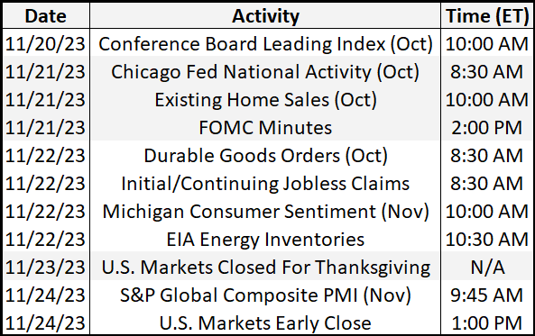 It’s a light list of economic data, with investors focused primarily on earnings during a shortened holiday week. In addition to the above, check out this week’s complete list of economic releases.