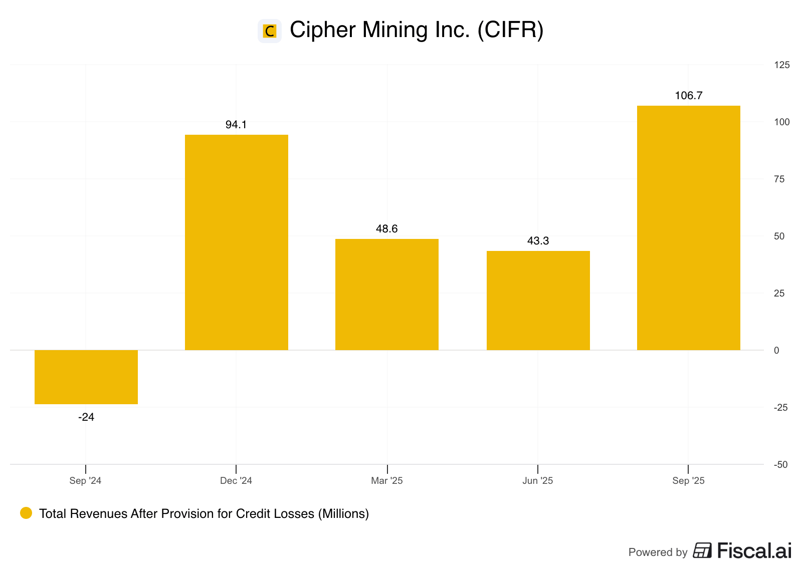 CIFR revenue in the past five quarters, according to Fiscal.ai