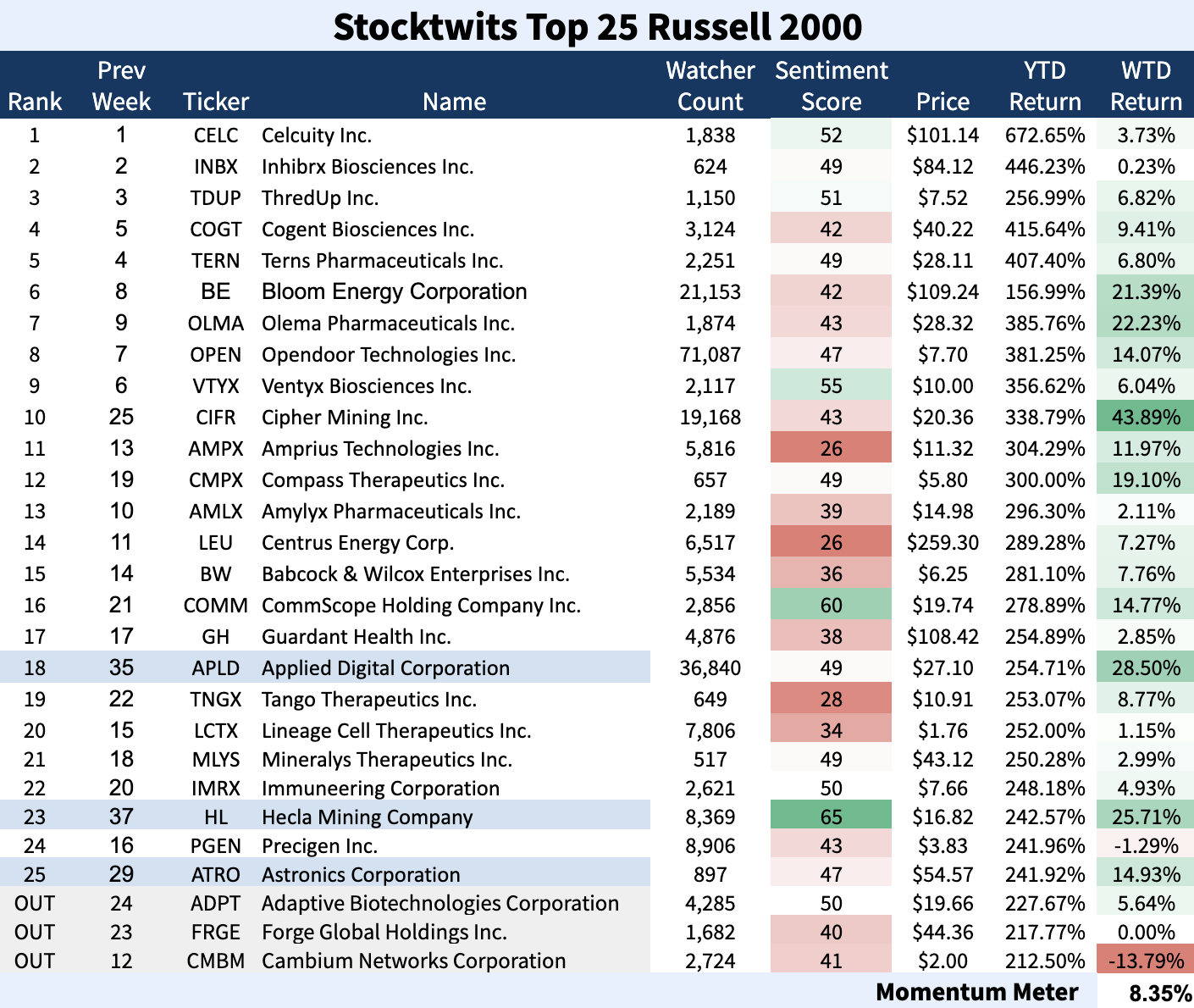 The Top 25 list's Top Dawg was $CIFR ( ▲ 6.27% ) climbing 43%+!