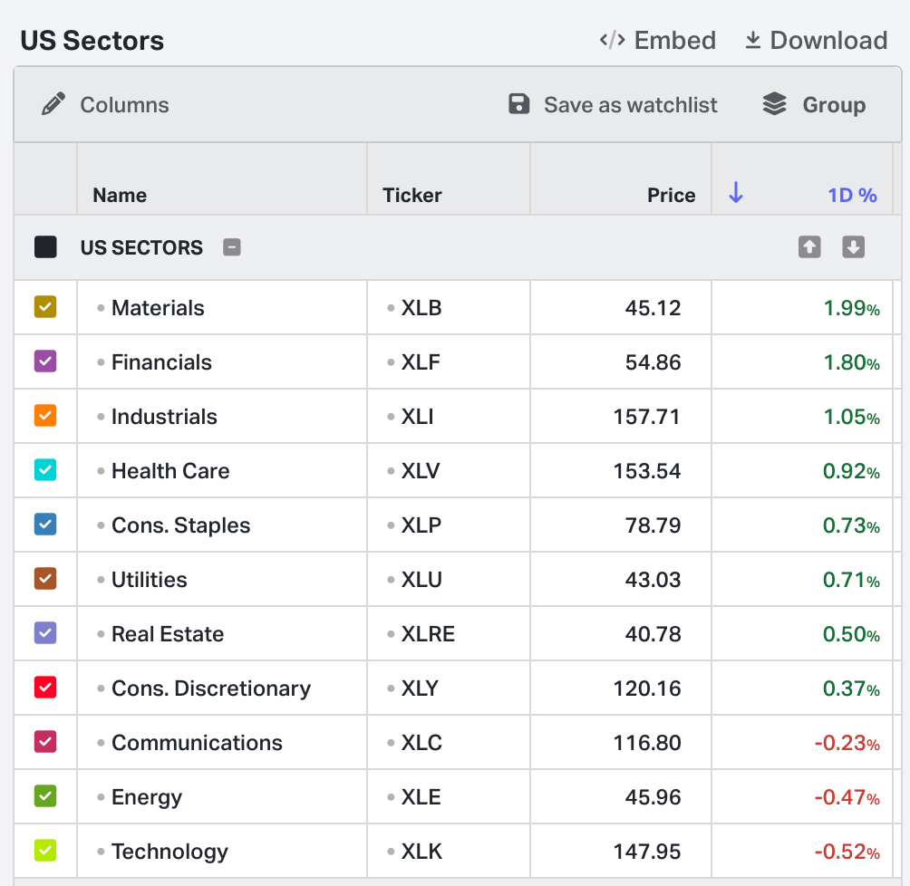 The Dow and Russell also hit record highs, boosted by Financials and Materials stocks, but they left behind big tech.